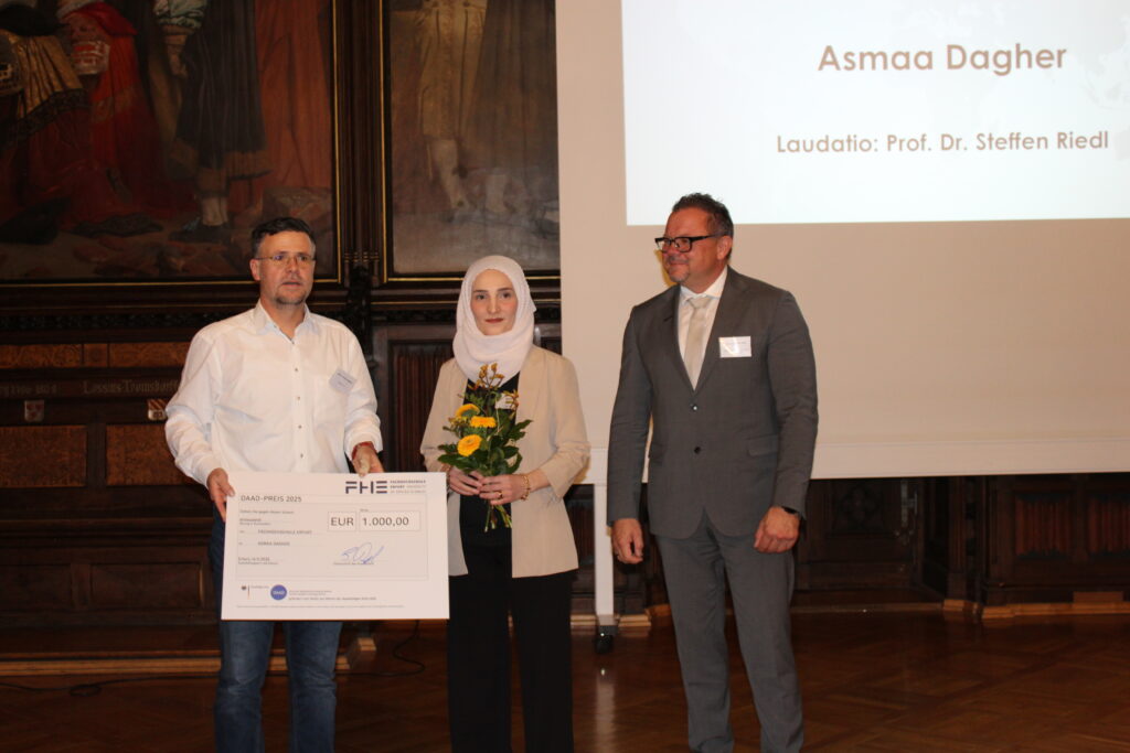 Das Programm des Abends war vielfältig und inhaltlich bedeutend. Neben der Begrüßung der neuen internationalen Mitglieder wurde insbesondere die DAAD-Preisverleihung 2025 durchgeführt. Asmaa Dagher von der Fachhochschule Erfurt erhielt die Auszeichnung „Hervorragende internationale Studierende an deutschen Hochschulen 2025“. Die Würdigung wurde von Prof. Dr. Steffen Riedl vorgenommen. Darüber hinaus bot der Abend abwechslungsreiche Musikbeiträge sowie ein interaktives Quiz, das für viel Applaus und gute Stimmung sorgte. Die drei schnellsten und schlausten internationalen Studierenden bekamen für ihre Leistung einen Kinogutschein.